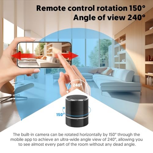 The Spy Camera features a stylish black design that seamlessly blends into any environment. Measuring just 3.3 x 3.3 x 4 inches and weighing a mere 10.72 ounces, this compact device can easily fit into your bedroom, office, or living room without drawing attention. The 240° ultra-wide-angle lens ensures you won’t miss a single detail, capturing everything within its expansive field of view.