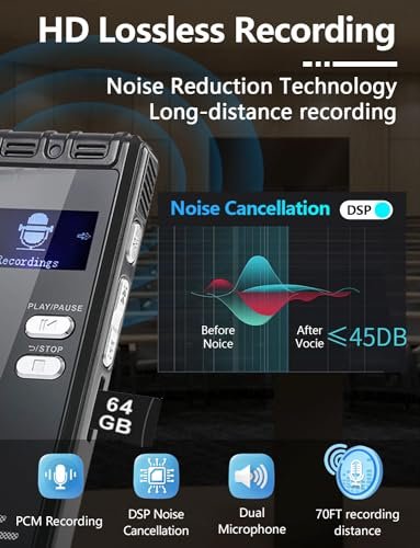 Imagine if you could hold the power of an entire conference, a lecture, or your beloved bandâs rehearsal right in your pocket. Introducing the 64GB Digital Voice Activated Recorder â your new best friend for capturing crisp, clear audio effortlessly. Whether you’re a student, a professional, or a music enthusiast, this recorder is designed to meet your every need.