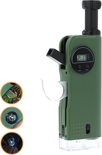 I was searching for a gift for my 9-year-old son who loves bug collecting, and this tool seemed perfect with its compass, microscope, and more. When I ordered it, I was impressed by its quality and functionality. On Christmas, he was thrilled to find a microscope and telescope included. He even had a bit too much fun with the whistle! Unfortunately, the excitement didnât last long; the light stopped working just two months later, and the clock never functioned properly. I would set it for him, but it would revert to 12:00 blinking by the next day. I’m really disappointed with this purchase. Now it’s just sitting in a bin on his shelf, waiting for our next trip to Goodwill.