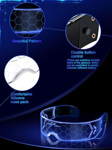 Are you ready to turn heads and light up any event? Introducing the TOODOO 2 Pairs LED Visor Glasses â the ultimate accessory for anyone looking to add a touch of futuristic flair to their wardrobe. Whether youâre hitting the club, attending a concert, or just having fun on a night out with friends, these glasses are designed to make you the star of the show!