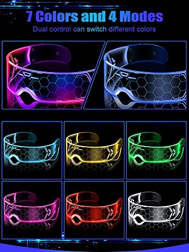 If you want to make a bold statement, the LED Visor Glasses 7 Colors Futuristic Glasses are the perfect choice! These glasses add a splash of color and a modern flair to any outfit, ensuring that youâll turn heads wherever you go. With two pairs included, you can either share them with a friend or change your style throughout the evening.